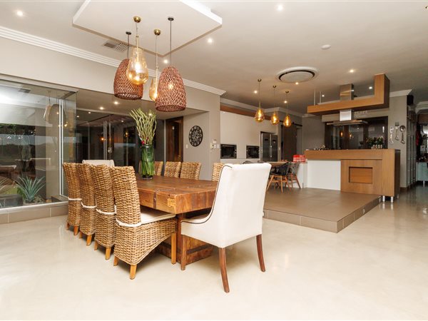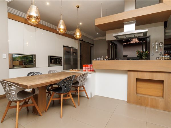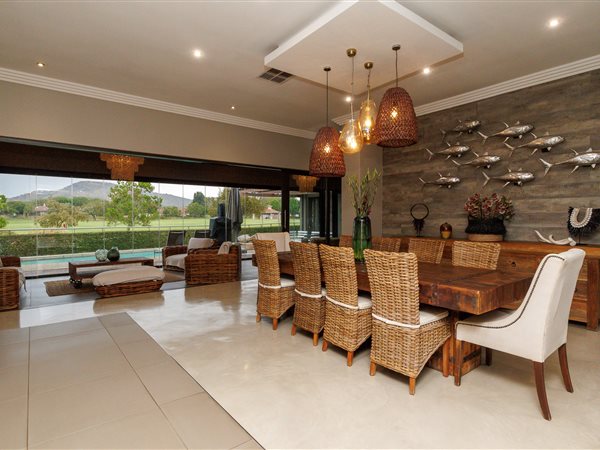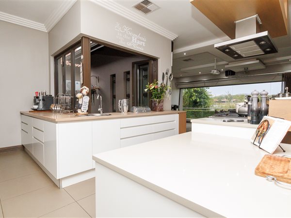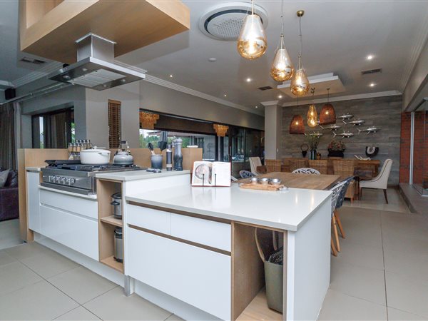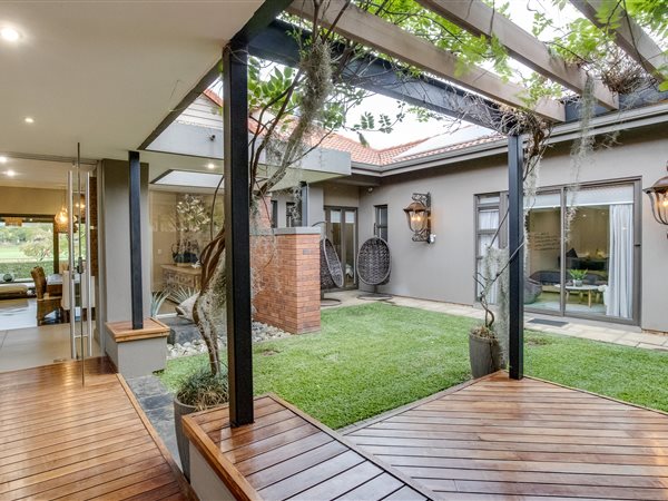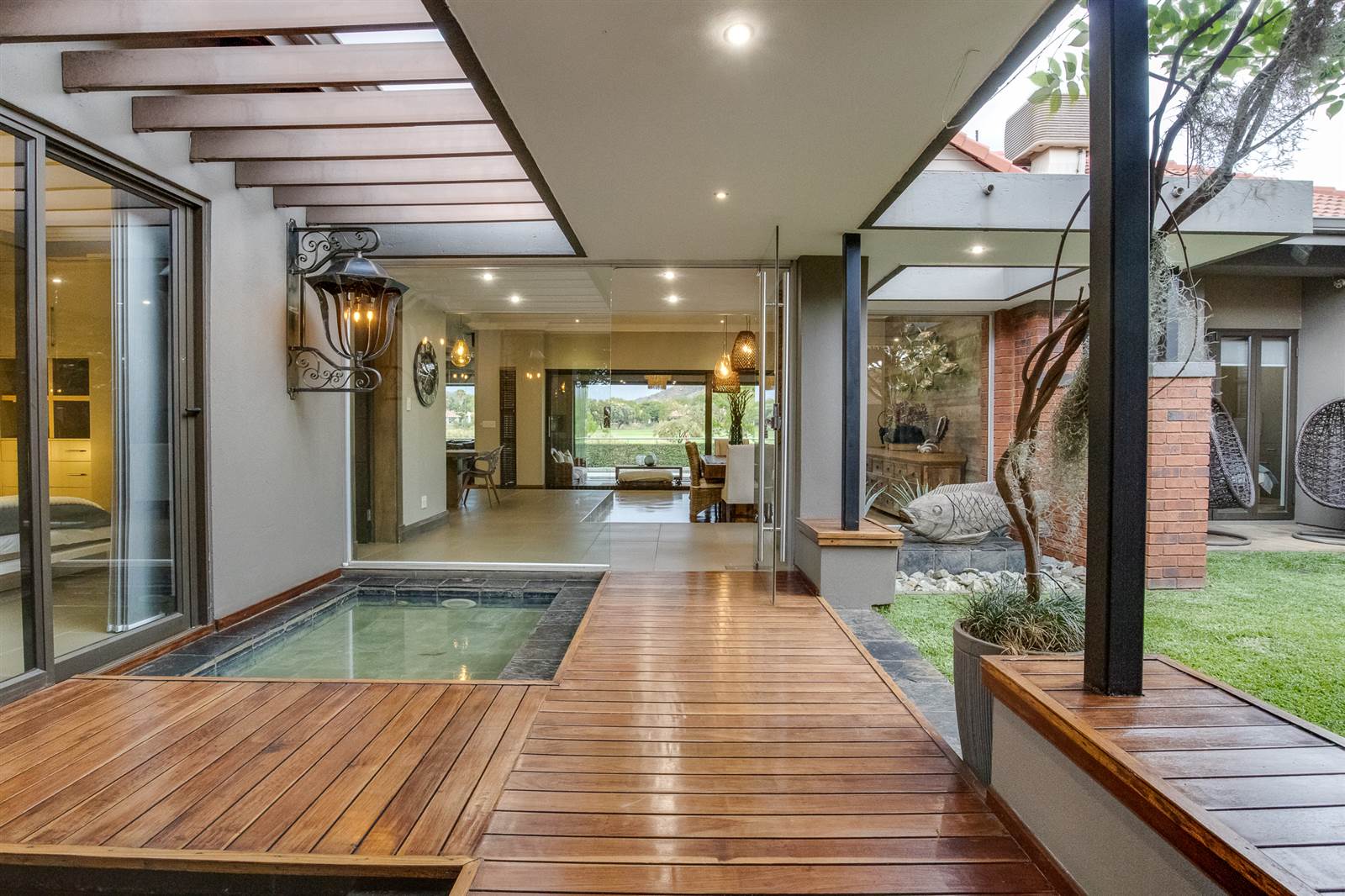JOINT MANDATE - This property will take your breathe away! This immaculate 5 bedroom home is designed with absolute attention to detail. The upmarket finishes throughout this beautiful home will satisfy any discerning buyer. Set on a double stand this property enjoys views from the expansive patio with frameless stacking doors. The spacious covered patio flows seamlessly onto an elegantly crafted pool deck, featuring a heated pool, built in braai and a charming pergolaideal for leisurely afternoons and memorable gatherings with loved ones. Low-maintenance astroturf enhances the outdoor space with a consistently pristine look. The sophisticated kitchen, a culinary dream, features a double Fratelli Onofri oven, gas hob, walk-in pantry, and separate scullery. The expansive living/entertainment area with its built-in bar, sound and cinema system and combustion fireplace sets the atmosphere for year round family living.