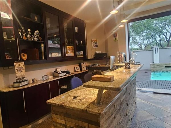 Step into refined luxury with this immaculate upmarket double-storey home, thoughtfully designed for both comfort and style. Boasting four generously sized en-suite bedrooms, each with its own air-conditioning, this home offers privacy and sophistication for the entire family. The expansive layout features seamless indoor-outdoor flow, ideal for entertaining, with a sparkling swimming pool and a dedicated entertainment area that invites gatherings all year round. A modern double garage provides secure parking, while well-appointed domestic quarters offer added convenience. This is the perfect blend of luxury living and functionality an exceptional property that meets every lifestyle need in a prestigious setting.