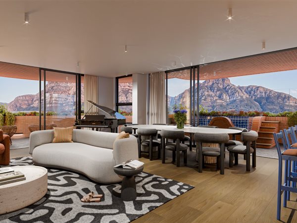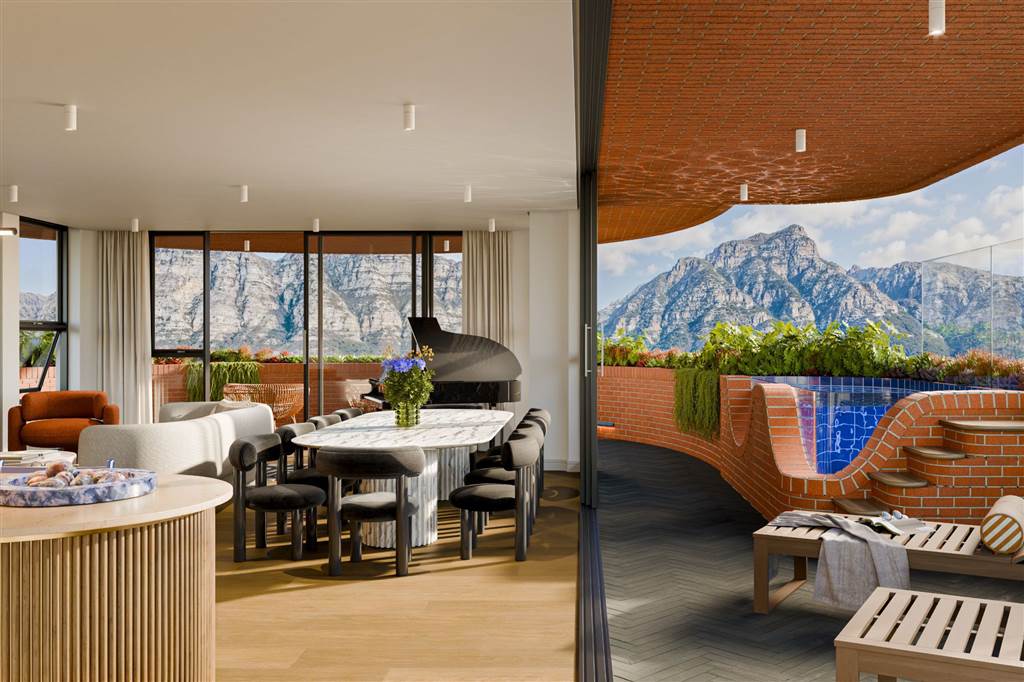 The Penthouse offers an expansive 156m of internal living space, complemented by 86m of outdoor area. It features a private plunge pool and breathtaking mountain views. The property features four parking bays and two storerooms, and is pet-friendly, subject to approval by the body corporate. The estimated completion date is set for the end of 2027.