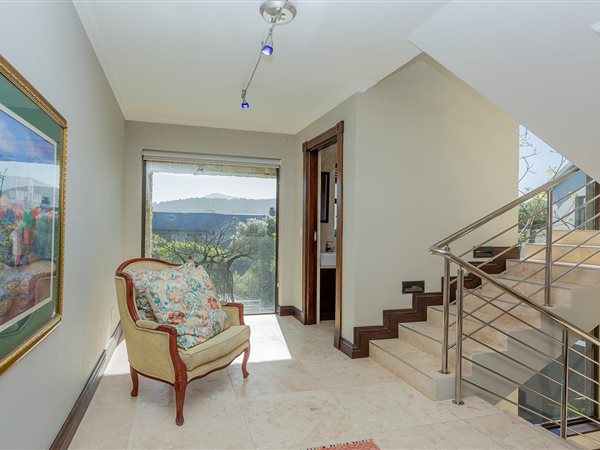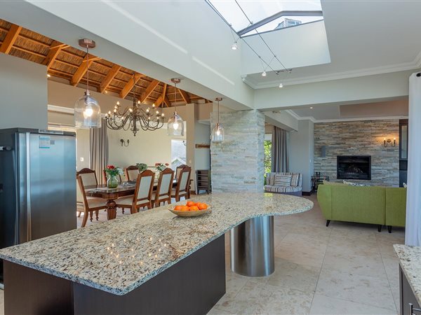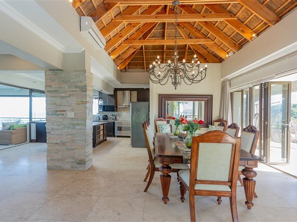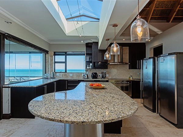 The top floor is the crown jewel of this exquisite home. The open-plan kitchen, complete with a scullery and laundry area, offers cooking with a view. The adjoining open-plan lounge has an indoor braai area, and provides the perfect setting for year round entertainment. The dining room is enhanced by stacker doors, leading to balconies that offer mountain views. The stunning sun room, with its panoramic sea views, can serve as a games room or additional lounge space.