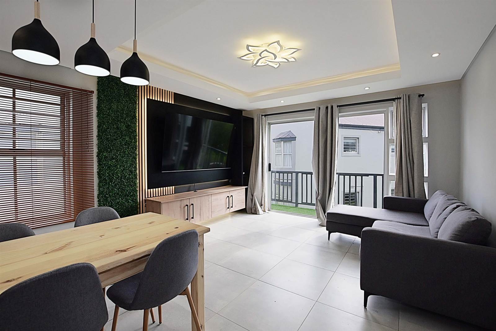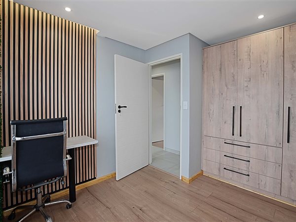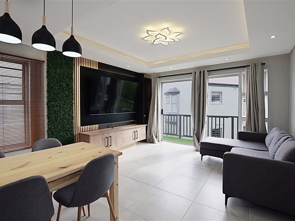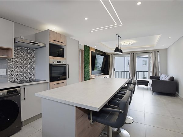 Step inside to a stylish, move-in-ready space featuring a modern open-plan kitchen with a generous island, ample cupboard space, and quality finishes. The spacious lounge flows effortlessly onto a private balcony with a built-in braaiperfect for entertaining or enjoying quiet evenings at home. Both bedrooms are well-sized with built-in cupboards and laminate wood flooring, while the contemporary bathroom includes an oversized walk-in shower and floating vanity. Thoughtful finishing touches such as LED lighting, black steel accents, and warm natural tones throughout complete the sleek, modern aesthetic.