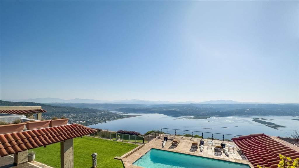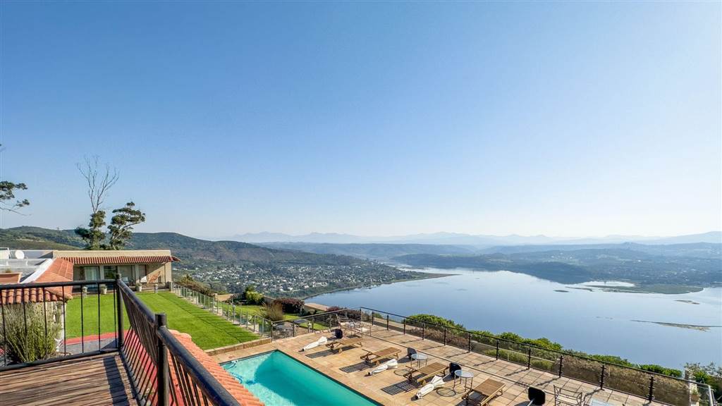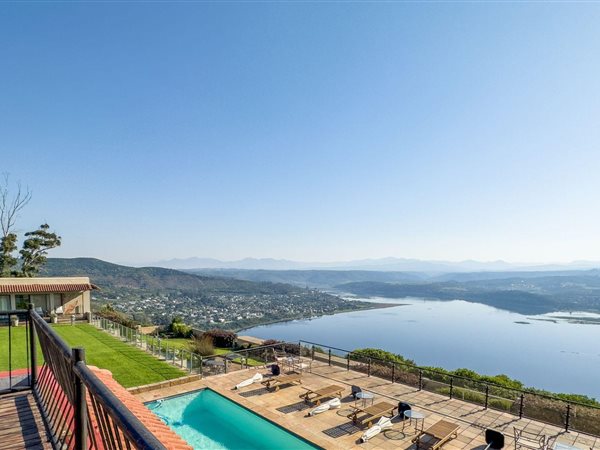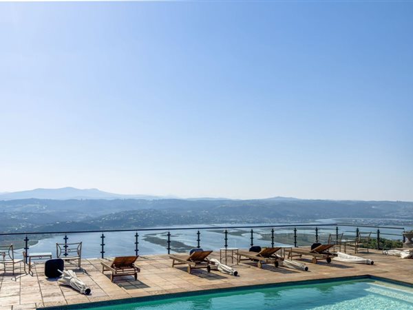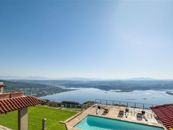 This stunning Tuscan-style villa, perched high on the northen head of the famous Knysna Heads, offers breathtaking views of the Knysna Estuarine bay, majestic mountains, lush forests, and the town of Knysna.