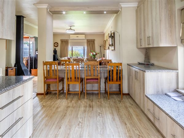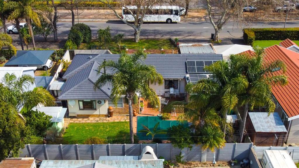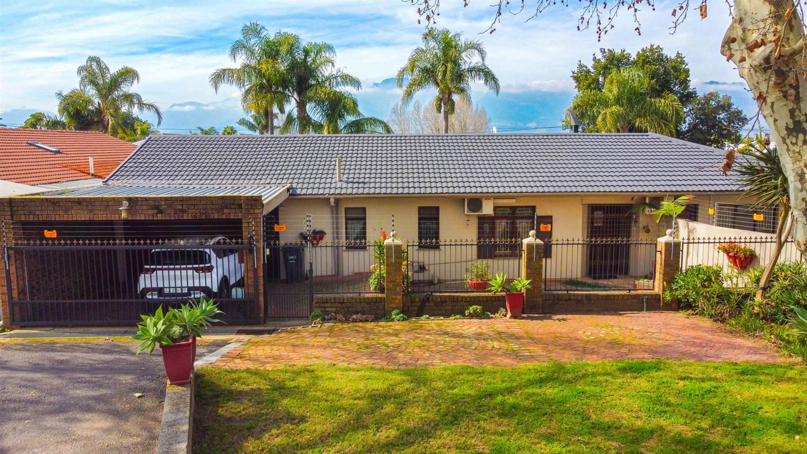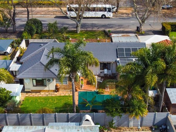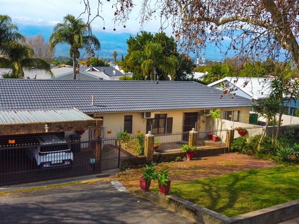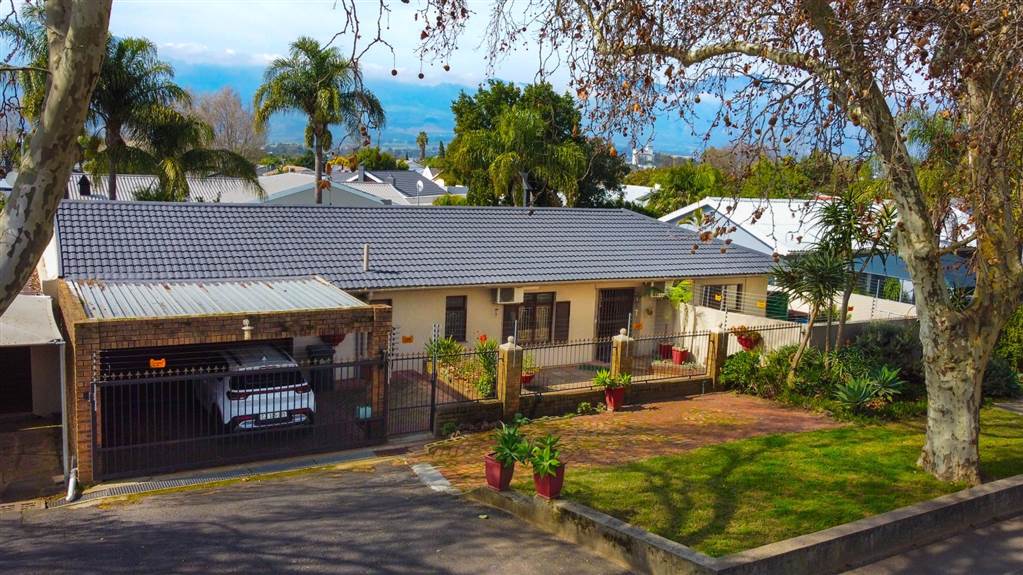 Sole Mandate. This 3 bedroom home, (plus a study) situated opposite one of the leading primary schools in Paarl North is a perfect blend of comfort and convenience, ideal for families with school-going children, Offering 3 bedrooms with built-in cupboards (air conditioned main en-suite bedroom with bath, shower, toilet and hand basin), and family bathroom with shower, toilet, and hand basin serving the other 2 bedrooms. The separate study is ideal for working from home, or a 4th bedroom. The well-equipped open plan kitchen and laundry flow towards the air conditioned dining/lounge area, is fitted with a fire place, and opens up onto the enclosed braai room. The swimming pool is privately nestled in the enclosed backyard, with a manageable garden and lawn area for children and pets to play. Two wendy houses allow for extra storage, while a double carport and automated extended garage with a workshop area, offer ample parking space, with the potential of converting into a granny flat or office with its own outside entrance. For extra peace of mind, security gates, and a remote-controlled security system are in place. Eco-friendly features include 12 solar panels, 3 x 5kw batteries, and an inverter, ensuring sustainability and lower energy costs, plus an automated irrigation system and 2 water tanks.