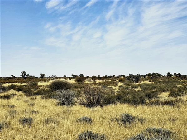 This unique Kalahari landscape boasts soft sandy soils with dunes of varying sizes, complemented by natural grasslands, thorny bush pockets, and an abundance of camel thorn and grey camel thorn trees. Vegetation provides excellent grazing for sheep, cattle, or game farming.