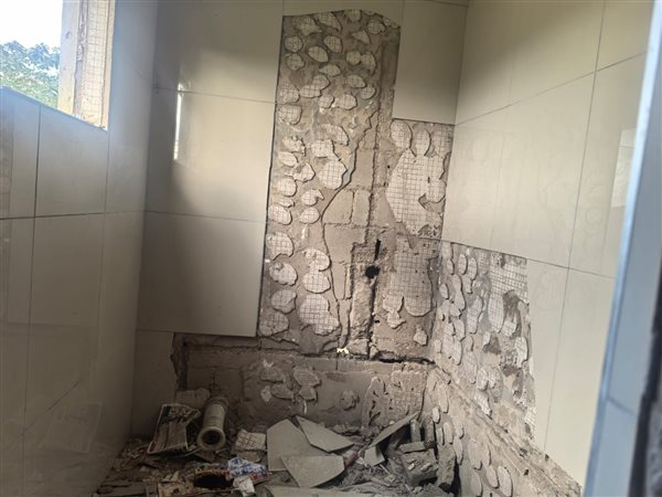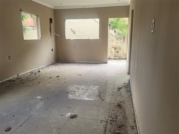 The existing structure features two bedrooms, one bathroom, a single open plan lounge, and a kitchen, providing a functional layout ready for a complete modern overhaul. The interior spaces, though presently in a state of disrepair with exposed elements and missing fixtures, offer a blank canvas for custom design and contemporary finishes. Imagine transforming these rooms into bright, inviting living areas tailored to your exact specifications.