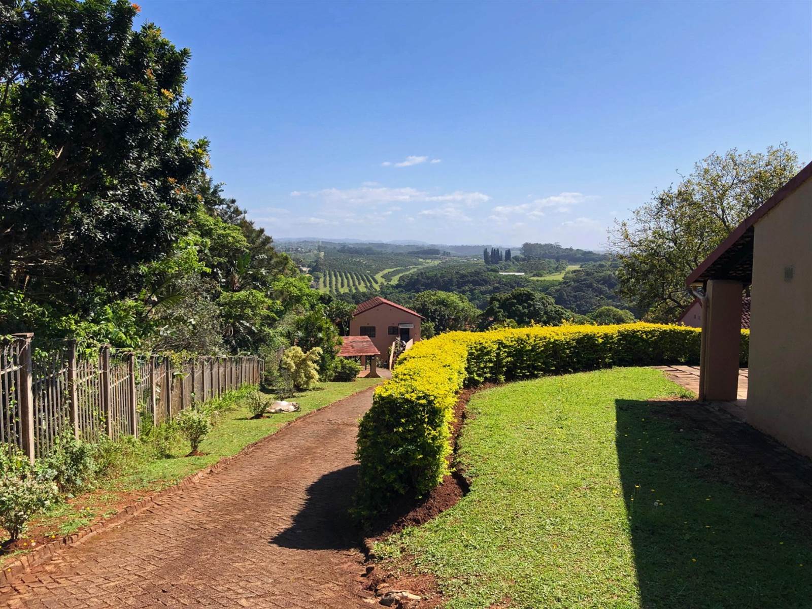 Discover this charming 2-bedroom, 1-bathroom residence nestled within a secure, gated community in Glenmore, Port Edward. Boasting a generous Erf size of 55922 sqm and a comfortable 75 sqm floor size, this property offers a unique blend of tranquil country living and coastal appeal. The kerb appeal is enhanced by a paved driveway, a well-maintained garden, and stunning panoramic views of rolling hills, orchards, and forests, creating a serene and private atmosphere.