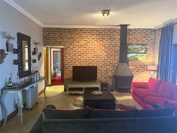 Two of the four spacious bedrooms feature their own fireplaces, adding a touch of indulgence and warmth during Dullstrooms misty evenings. The enclosed dining room, complete with a built-in braai, opens onto a patio, creating a seamless indoor-outdoor living experience perfect for entertaining or simply soaking in the tranquility of the countryside.