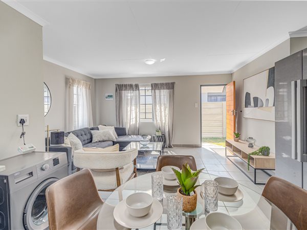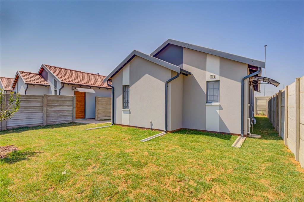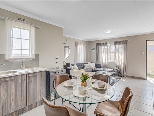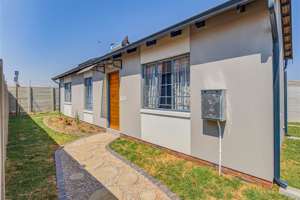 This beautiful home is perfectly located close to public and private schools, making it ideal for families. The house boasts two spacious bedrooms, with the main bedroom featuring built-in cupboards. The kitchen is fully equipped with a double sink, 3-door built-in cupboards, electric oven, and gas hob. Additional features include TV points, half-moon lights in the lounge, and extra double plugs in the lounge and kitchen.