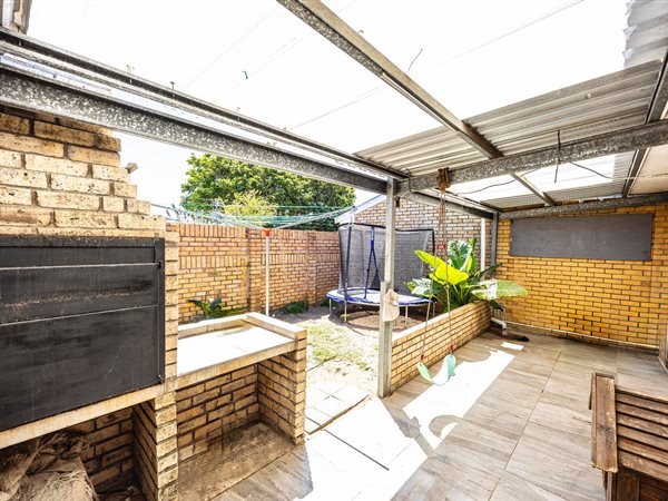 The open-plan living and dining area flows seamlessly through sliding doors to a private yard and an undercover braai area ideal for relaxed indoor-outdoor living. The kitchen is well-equipped with built-in cupboards, a hob, and an under-counter oven.