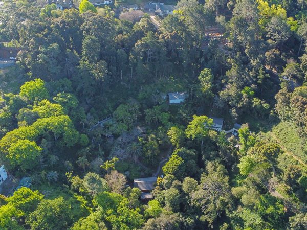 REMAX UNLIMITED TEAM THE UPPERS IS PROUD TO PRESENT - Discover an exceptional opportunity within the prestigious Constantia suburb of Cape Town. This expansive 8000 sqm erf offers a truly private and secluded natural environment, nestled amidst a heavily wooded, sloped mountainside. The property boasts stunning natural mountain views and a lush, mature garden with abundant trees and tropical foliage, creating a tranquil retreat from city life. Visible charming rustic structures are integrated into the landscape, hinting at a unique lifestyle or development potential.