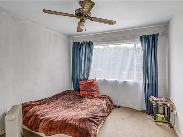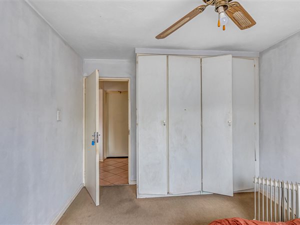 Both bedrooms are well-proportioned, featuring built-in cupboards and ceiling fans for year-round comfort. The bathroom is neat and functional, fitted with a bath, basin, and toilet.