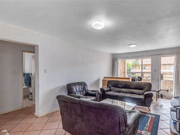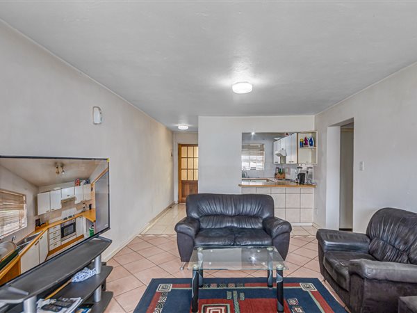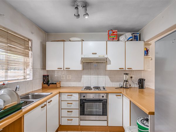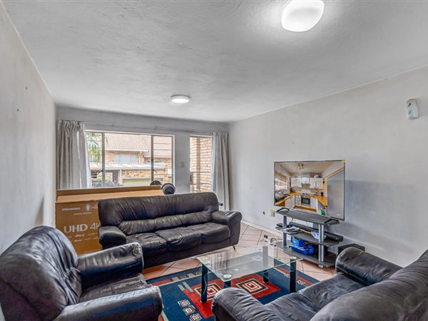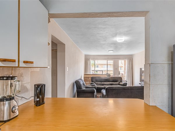 The kitchen flows seamlessly into the open-plan lounge, which is generously sized, fully tiled, and filled with natural light. From here, sliding doors open onto your own private patio with a built-in braai perfect for relaxing or hosting friends.